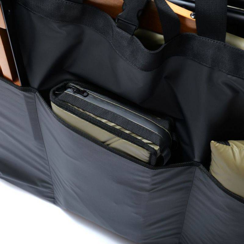 AS2OVローバーチェアが2脚収納できる大容量に加え、前面にはチェア周りのギアをまとめてしまえるワイドポケットを配置。