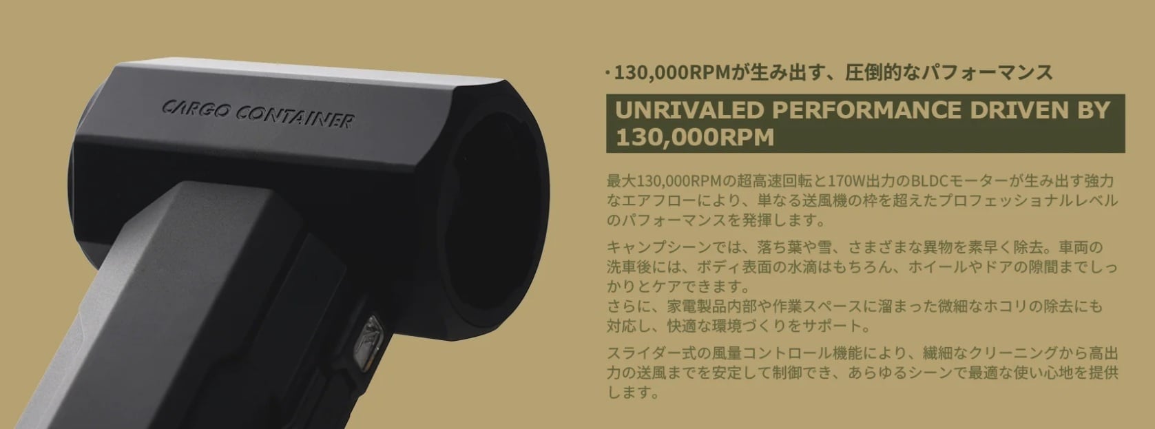 8種類のノズルを標準装備、キャンプだけに留まらず日常のあらゆるシーンで活躍するエアブロワー。