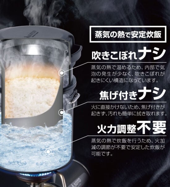 また、0.5~0.8合の炊飯を想定したコンパクト設計により、登山やソロキャンプでも手軽に