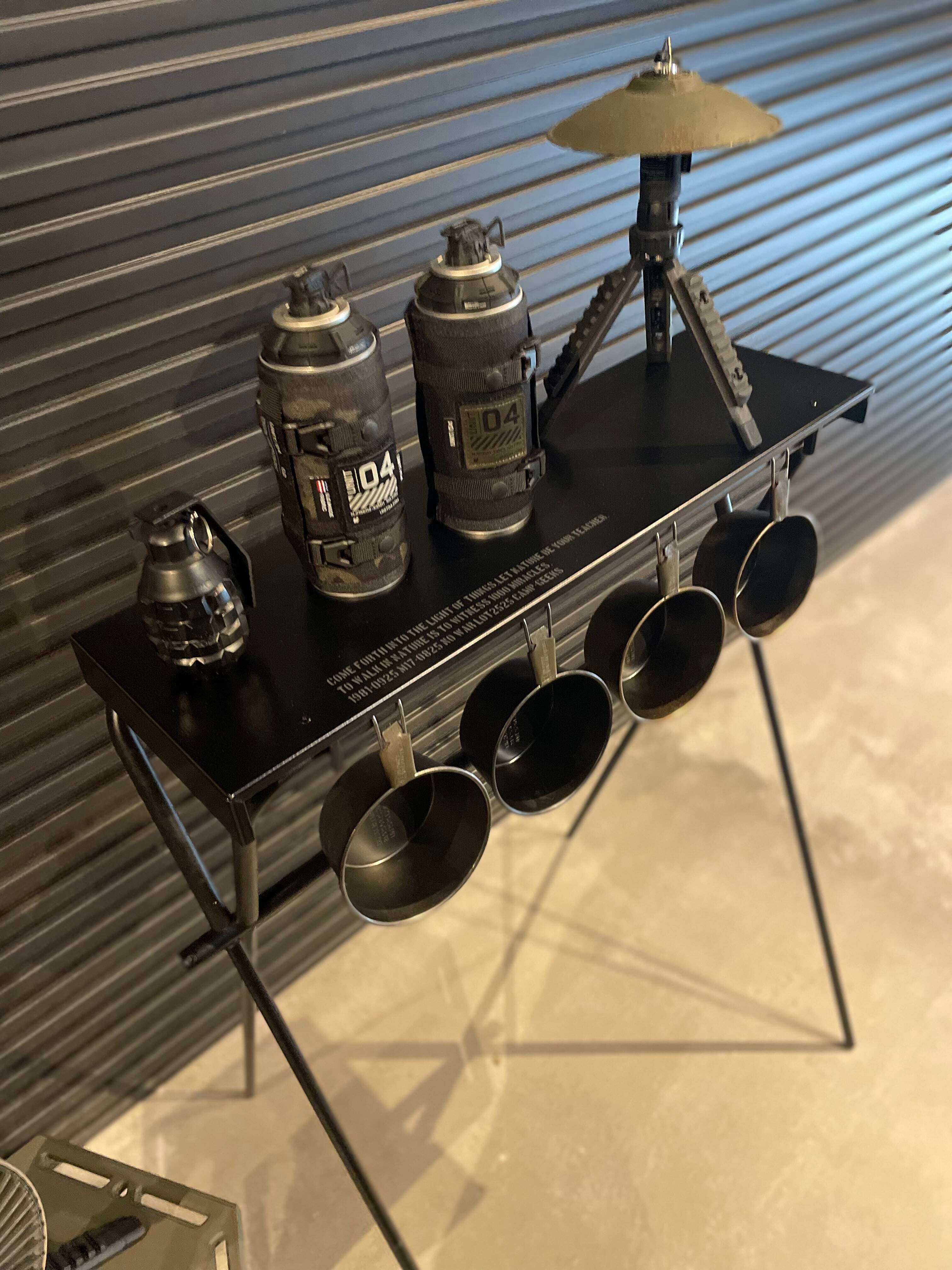 天板の下にはシエラカップなどが掛けれます。