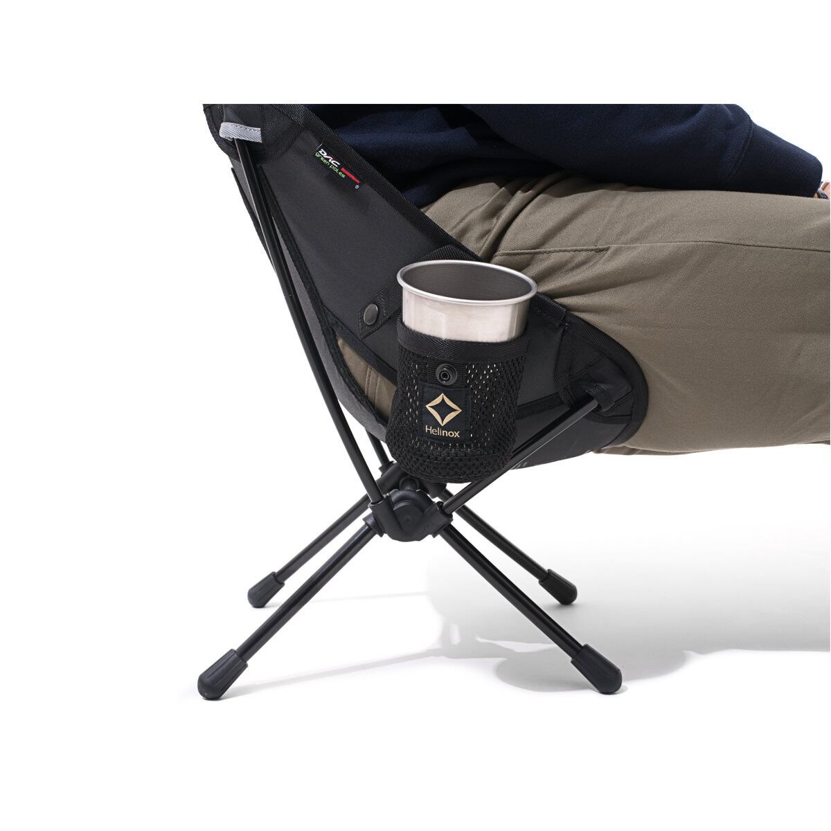 Helinox ヘリノックス タクティカル チェア ミニ はタクティカルチェアをベースにコンパクトなミニサイズに軽量化したモデルです。片側のカーゴポケットには小物等を収納可能で、反対側にはメッシュ素材のボトルポケットが付属します。背面にはベルクロが付いているので、ワッペンや夜間視認性を上げるための反射板などを付けてカスタマイズすることも可能です。耐荷重は90kgとなっており、ヘリノックス品質はそのままに子供から大人までご使用頂けます。快適な座り心地は変えずに、座面の角度を調整することで子供が座った際も転びにくく調整されています。
