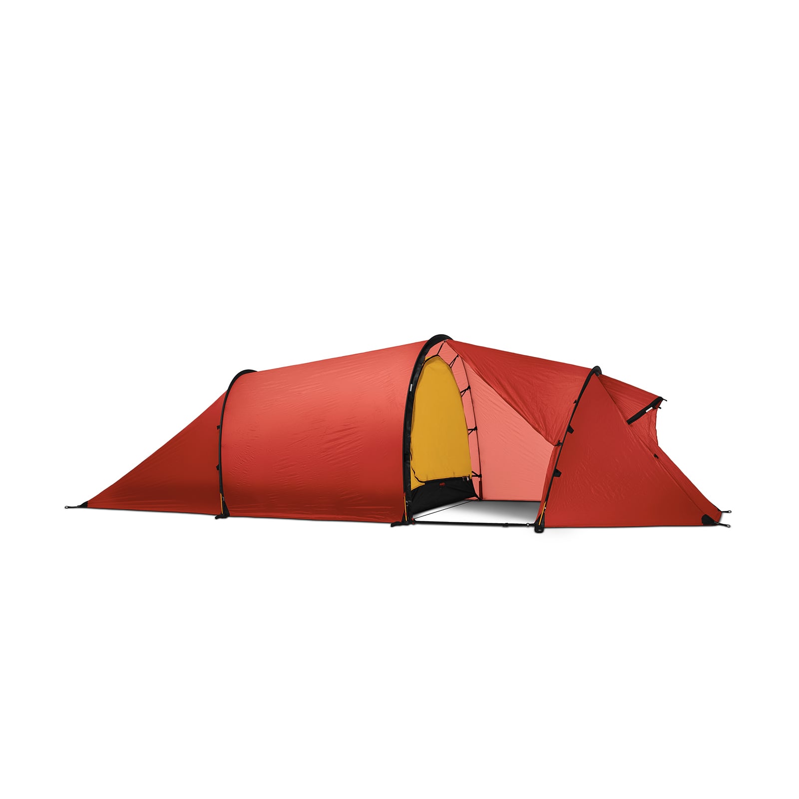 ナロ3GTの際立った特徴は軽量であることですが、それでもオールシーズンすべての天候での冒険に対処することができます。そのことは、このテントがオールシーズンすべての天候で機能する、最も軽量なテントを必要とする人々の最初の選択肢となる理由です。そういう人たちとは、たとえば、自然を相手にする写真家、プロの登山家、ハンター、そして大量のギアを携行しなければならないその他の冒険家、そして、より多くのものを運びたいと望んでいる長距離のハイカーのことです。非常に軽いので、本当に広々とした寝床を望むソロハイカーたちでさえ、ナロ3GTを選べば納得できます。2人組のチームはナロ3 GTを選択することが多いのですが、その理由は、ほんの少し重量が増えるだけで室内の広さと収納スペースがずいぶんと広がるからです。子供連れの家族や犬と一緒にハイキングをする人たちは、ナロ3 GTがもたらすたっぷりのスペースが気に入るでしょう。もちろん、その軽さにも満足することでしょう。「ナロ」は、スウェーデンのKebnekaise{ケブネカイセ}山脈にある山頂の名前です。