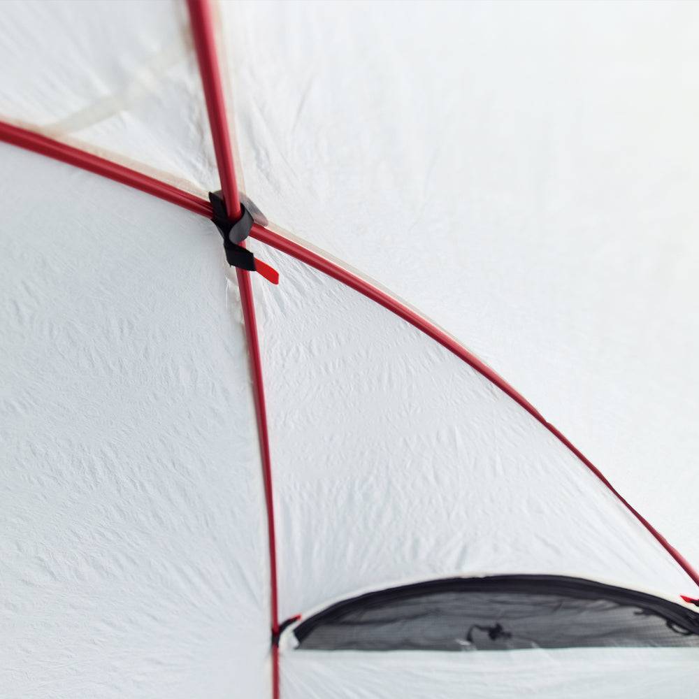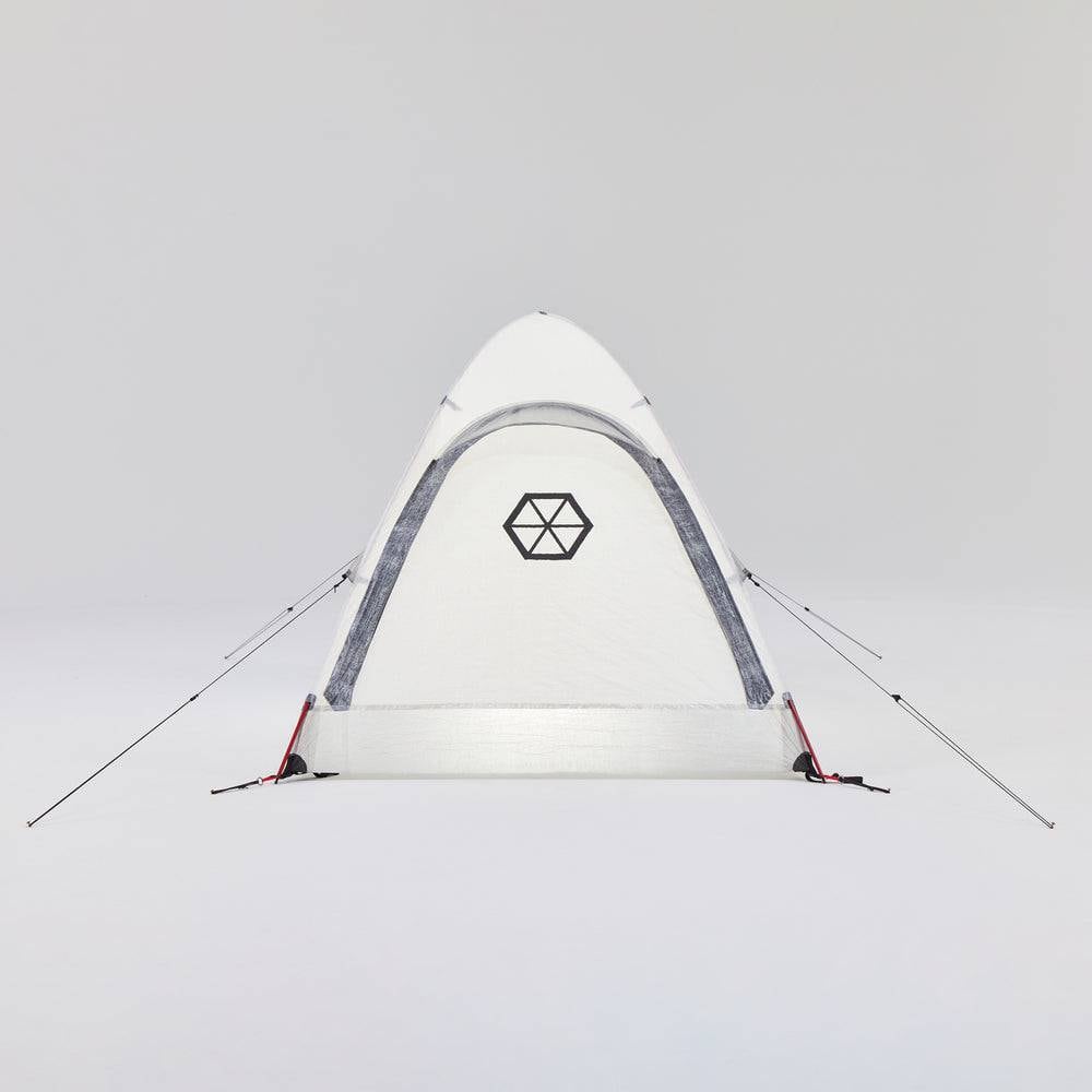アルパインクライミングのために窓やポケットを排するなど必要最小限 のスペックに削ぎ落し、3人用として超軽量な810gを実現したモデル。 コリン・ヘイリーなどトップアルパインクライマーのフィードバックを 経て高所用として開発。本体生地やポールなど、最新の素材を採用し強 度と軽量性を追求しています。イルターナルポール式を採用したシングルウォールテント。