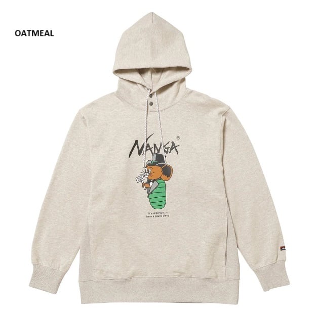 ジェリー鵜飼氏を代表するジェリーマルケスくんが、ナンガのシンボルの1つであるスリーピングバッグ(寝袋)に入ったグラフィックデザインプリントフーディー。キャッチーなグラフィックで、ストリートライクな着こなしにもぴったり。