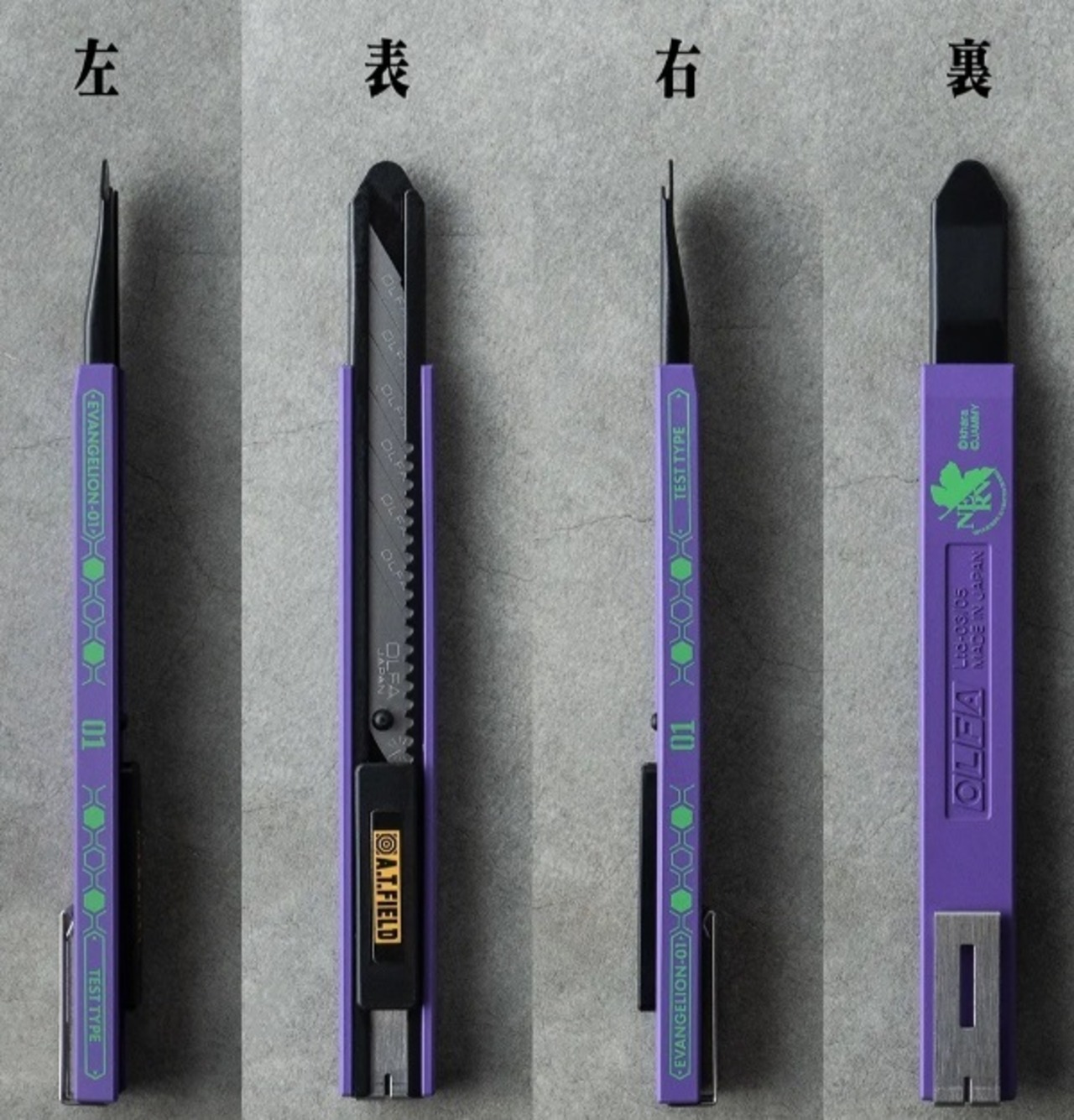 エヴァンゲリオンのワークブランド「A.T.FIELD EVANGELION WORK」とカッターの国内トップメーカー「オルファ」がコラボレーションした、エヴァンゲリオン初号機をイメージしたデザインのカッターナイフです。